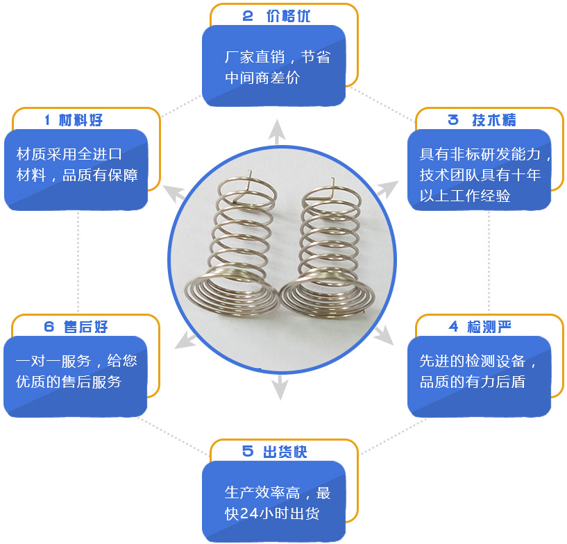 | 不銹鋼絲 (sus) | 有磁、無磁、光面和霧面 (樹脂面、暗面) | 201、202…… | 含鎳量少,達不到鹽霧測試 要求。 | 工藝彈簧多用此材料 |